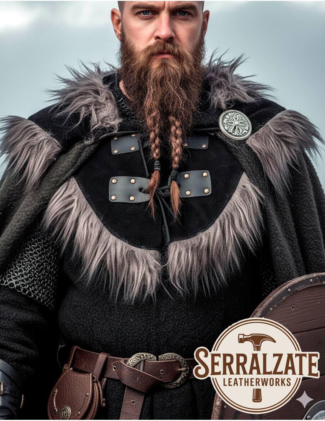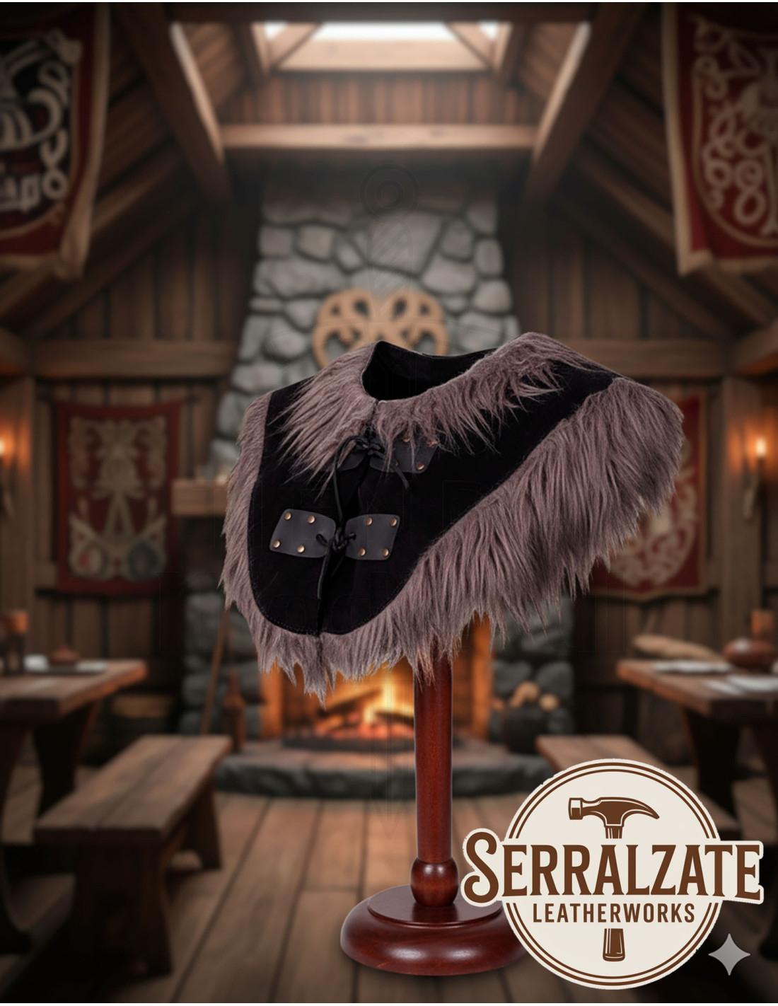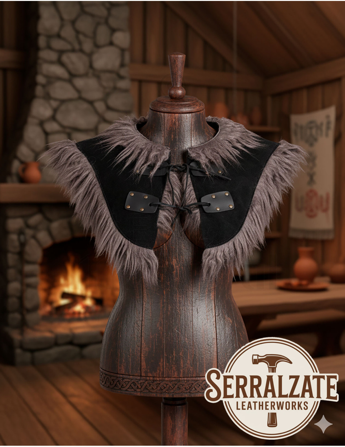 Découvrez l'équilibre parfait entre élégance et style sauvage avec le Gorjal Evaristo Pelerine noir avec fourrure grise d'Serralzate LeatherWorks. Cet accessoire, fabriqué artisanalement en Espagne, combine la douceur et la résistance du daim noir avec le luxe d'une fourrure synthétique grise qui entoure son contour, créant ainsi une pièce visuellement frappante et fonctionnelle à la fois. Conçu pour vous protéger dans les climats froids, sa finition généreuse en fourrure synthétique protège non seulement du vent mais ajoute également une touche de sophistication.