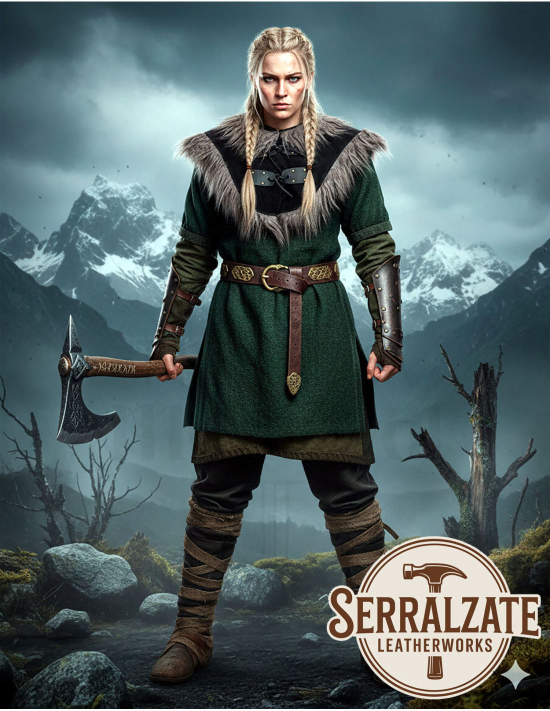 La fermeture frontale, conçue avec des plaques en cuir et des cordons de réglage, apporte praticité et une allure rustique qui complète son design unique. Les boutons décoratifs en tons dorés ou en bronze se détachent sur l'ensemble, faisant de ce gorjal un choix attrayant tant pour les occasions formelles que pour des looks inspirés de thèmes épiques ou médiévaux.