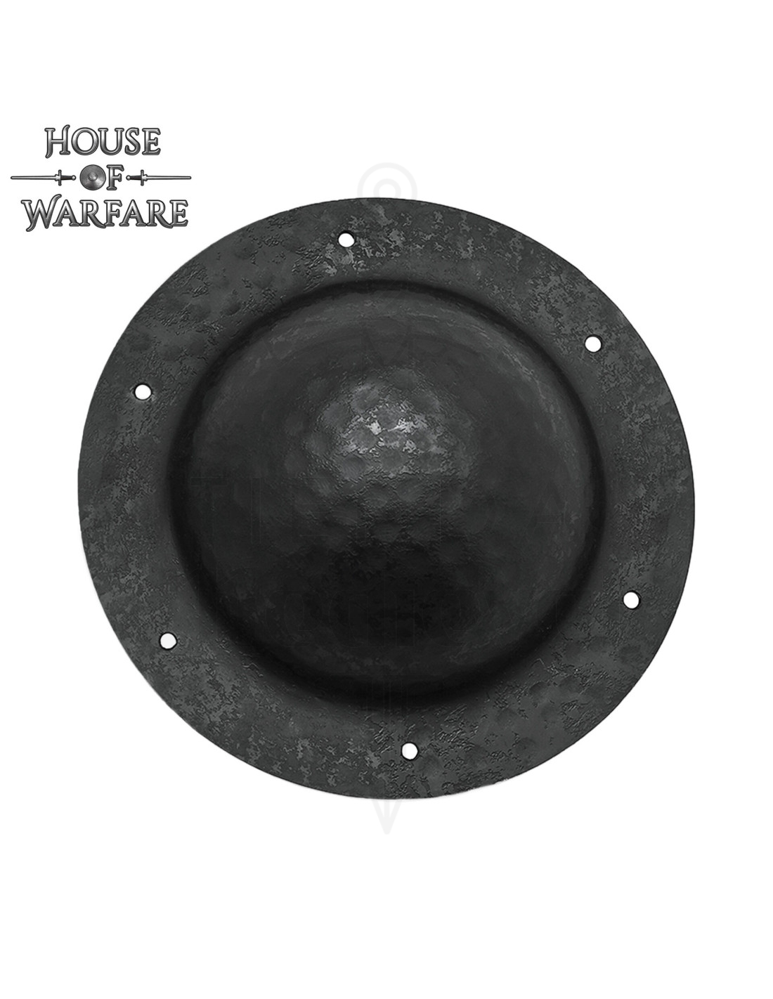 La coupole centrale est conçue pour laisser suffisamment d'espace entre la main et le métal, facilitant une prise confortable et sécurisée, permettant des manœuvres de défense et un contrôle du bouclier avec plus de confiance. Son profil concave renforce le centre du bouclier, déviant les impacts et prolongeant la durée de vie de la bois à laquelle elle est fixée.