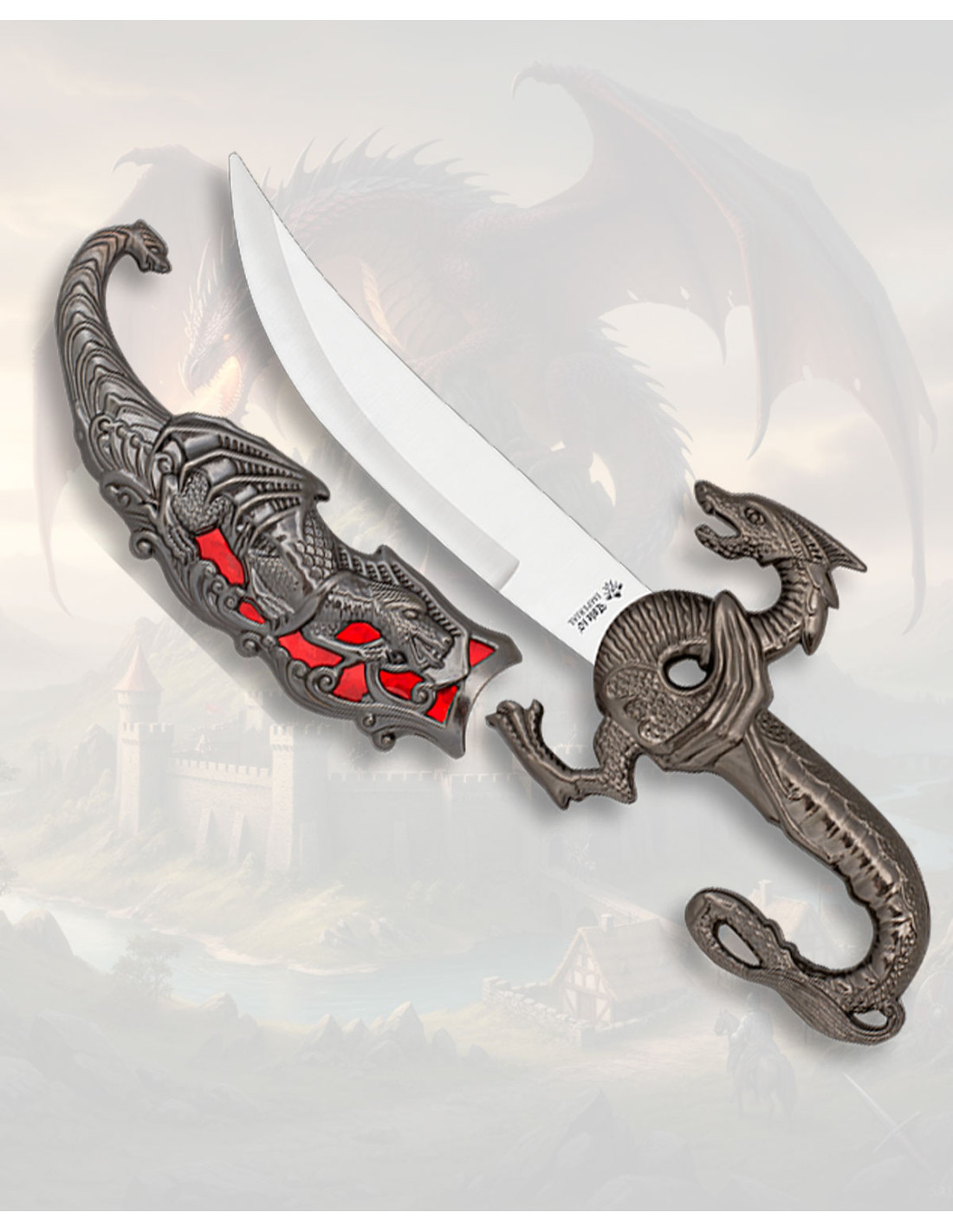Si vous êtes déterminé à ajouter une pièce singulière à votre collection, envisagez d'acheter la Dague médiévale fantaisie dragon, avec fourreau comme une acquisition qui combine esthétique, toucher et présence, prête à être exposée ou à accompagner des événements thématiques.