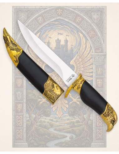 Si decides comprar Daga medieval modelo Aguila acabado oro viejo, te llevas una pieza que combina estética trabajada y presencia simbólica, pensada para destacar en colecciones, presentaciones o como regalo emblemático.