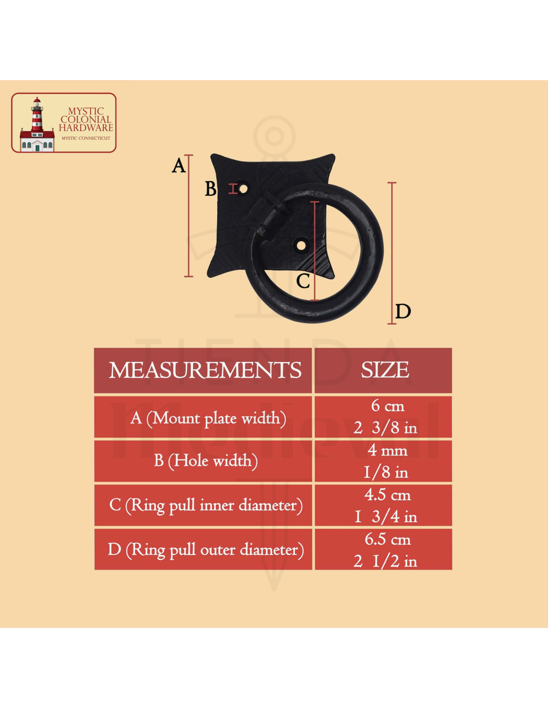 Le design, avec une base carrée et des détails en relief dans les coins, crée un point focal décoratif qui met en valeur les portes, tiroirs et arcades. L'anneau circulaire fixe, ancré au centre, offre une prise confortable et fiable, idéal pour les meubles qui nécessitent une manipulation constante. Les trois trous pour vis permettent une fixation stable et facile, apportant sécurité et tranquillité à son utilisation.