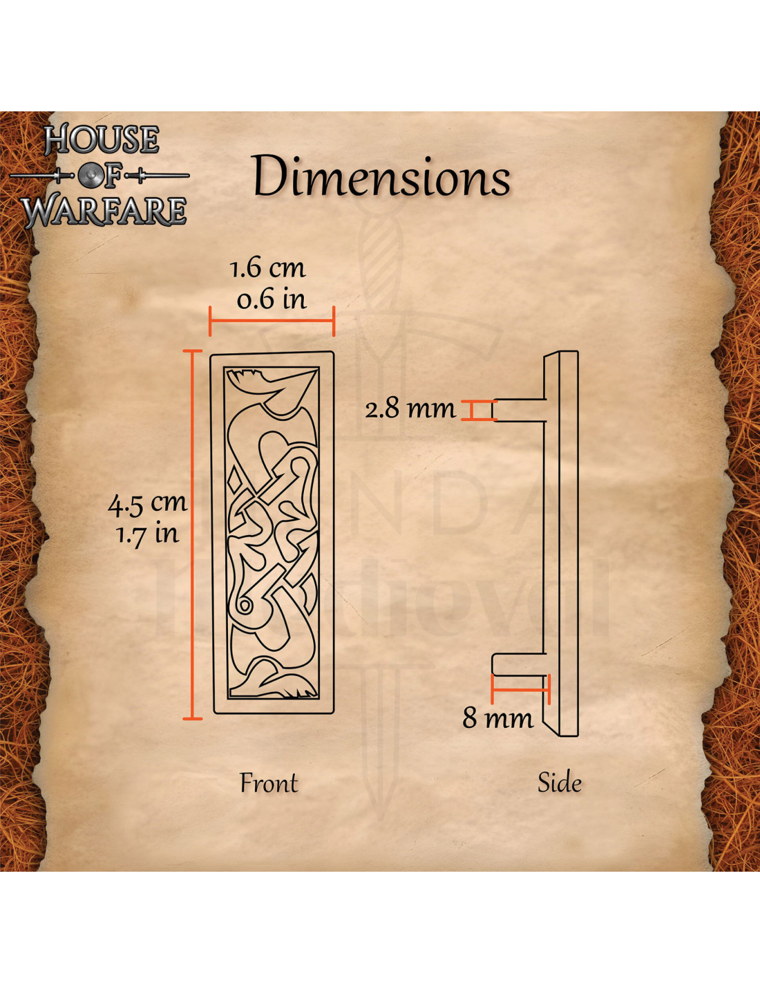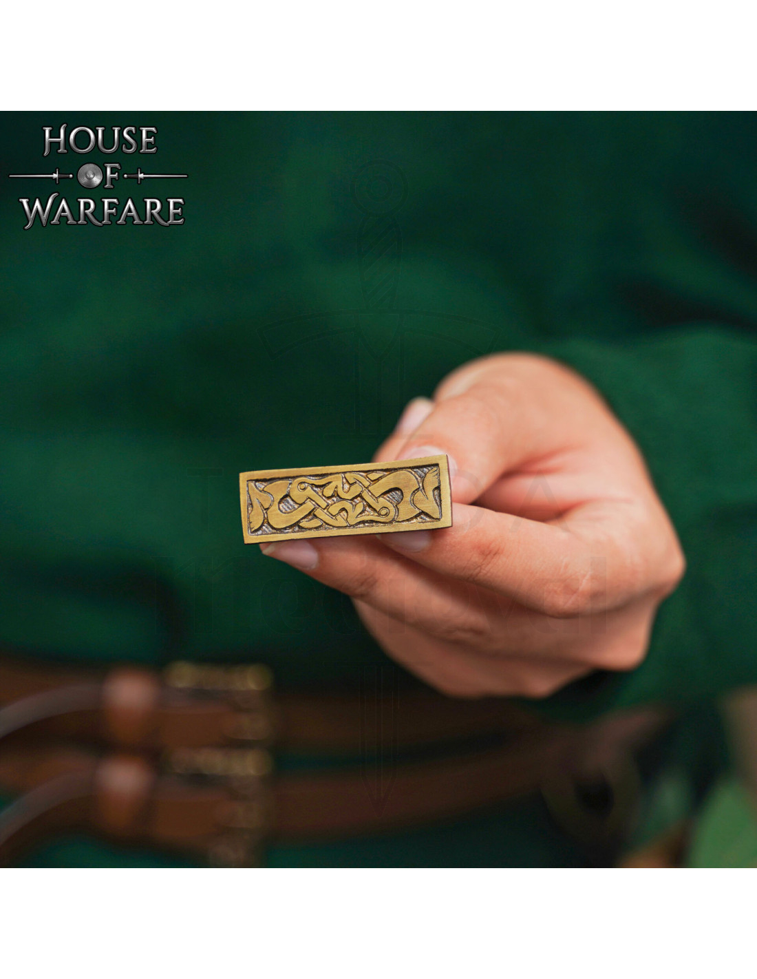 Parfaite pour des événements d'époque, des reconstitutions vikings, du LARP ou des foires médiévales, cette plaque s'intègre dans des projets de maroquinerie et dans des pièces de costume cherchant une touche distinctive. Si vous souhaitez acheter une Plaque décorative viking en laiton, pour ceintures, c'est une option claire pour rehausser votre équipement avec style.
