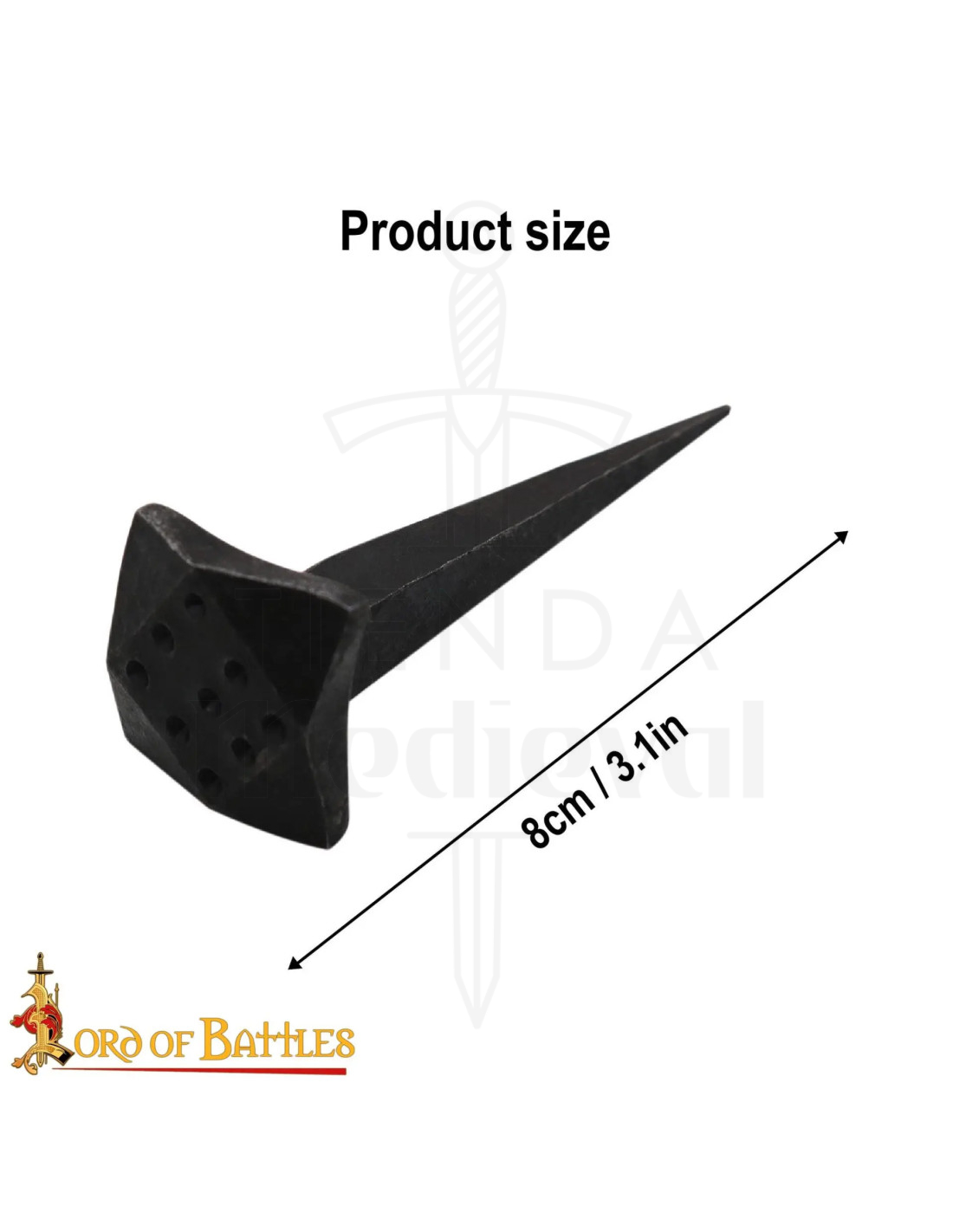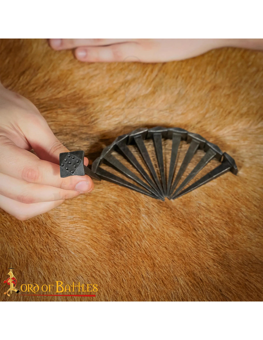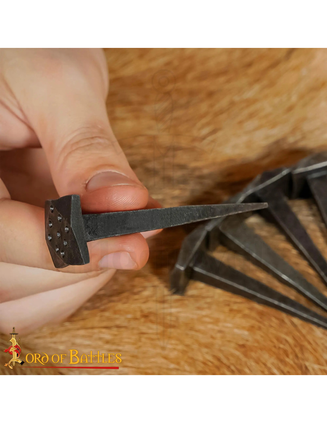 Fabriqués en fer résistant, ces clous offrent non seulement une durabilité et fiabilité inégalées pour résister à l'épreuve du temps, mais infusent également un charme rustique parfait pour recréer l'esthétique médiévale ou rehausser le mobilier historique. Leur large tête, mesurant entre 1,5 et 2 cm de large, fournit une présence visuelle forte qui ne passe pas inaperçue, idéale pour accentuer le design au lieu de le cacher.