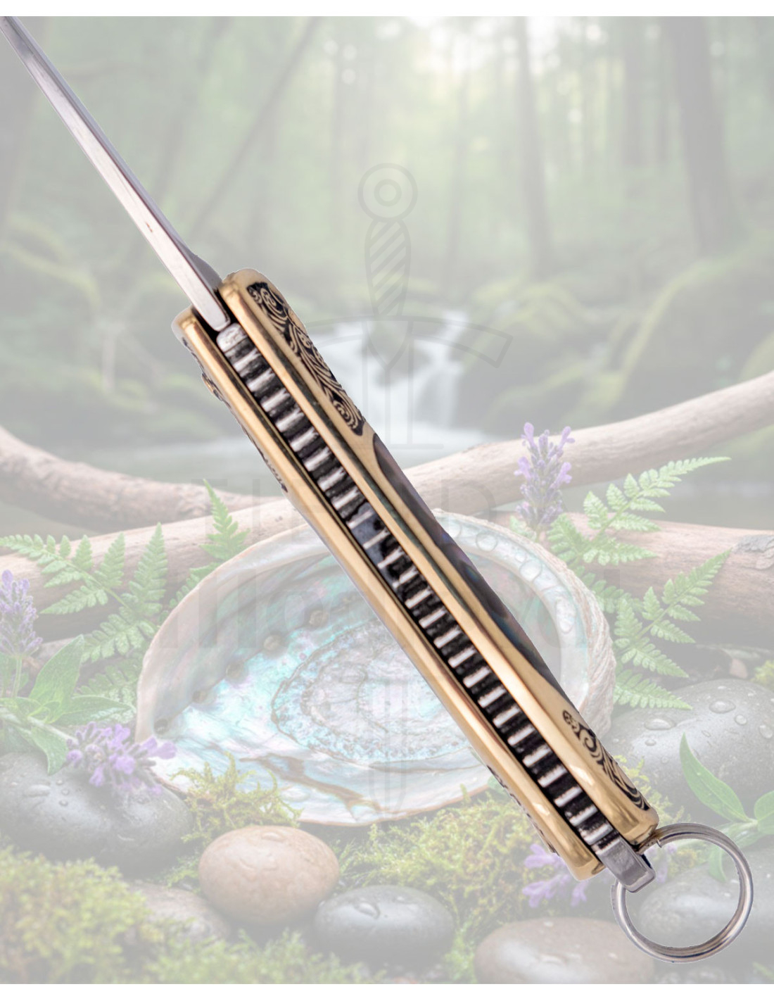 Parfait pour ceux qui apprécient les finitions brillantes, les insertions en nacre et un design compact qui ne renonce pas à la personnalité, ce couteau est une option distincte pour un cadeau mémorable ou un achat conscient.