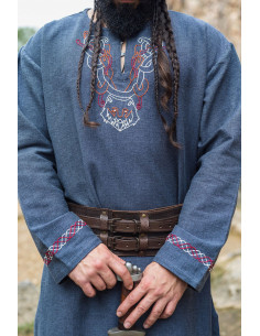 Tunique Freki Viking avec broderie main, gris bleuté