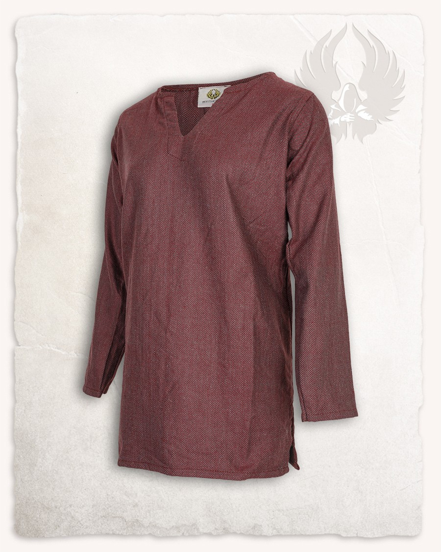 Plongez dans l'ère viking avec la tunique viking bordeaux motif chevrons Tronde ! Cette tunique est un vêtement extérieur typique du début de la période médiévale, commun dans de nombreuses régions d'Europe. Que ce soit comme vêtement extérieur ou sous-vêtement pour dames et messieurs, mendiants, guerriers ou nobles, la tunique -Tronde-, disponible dans une grande variété de tissus et de couleurs, est une base idéale pour presque tous les costumes.