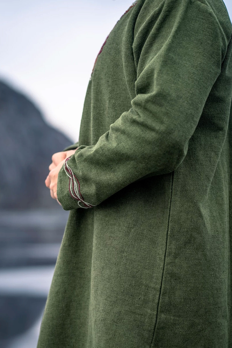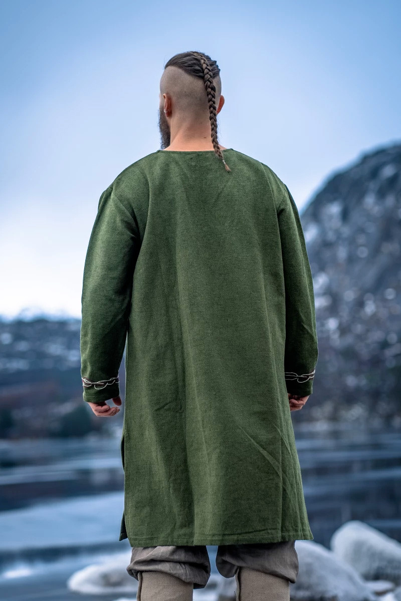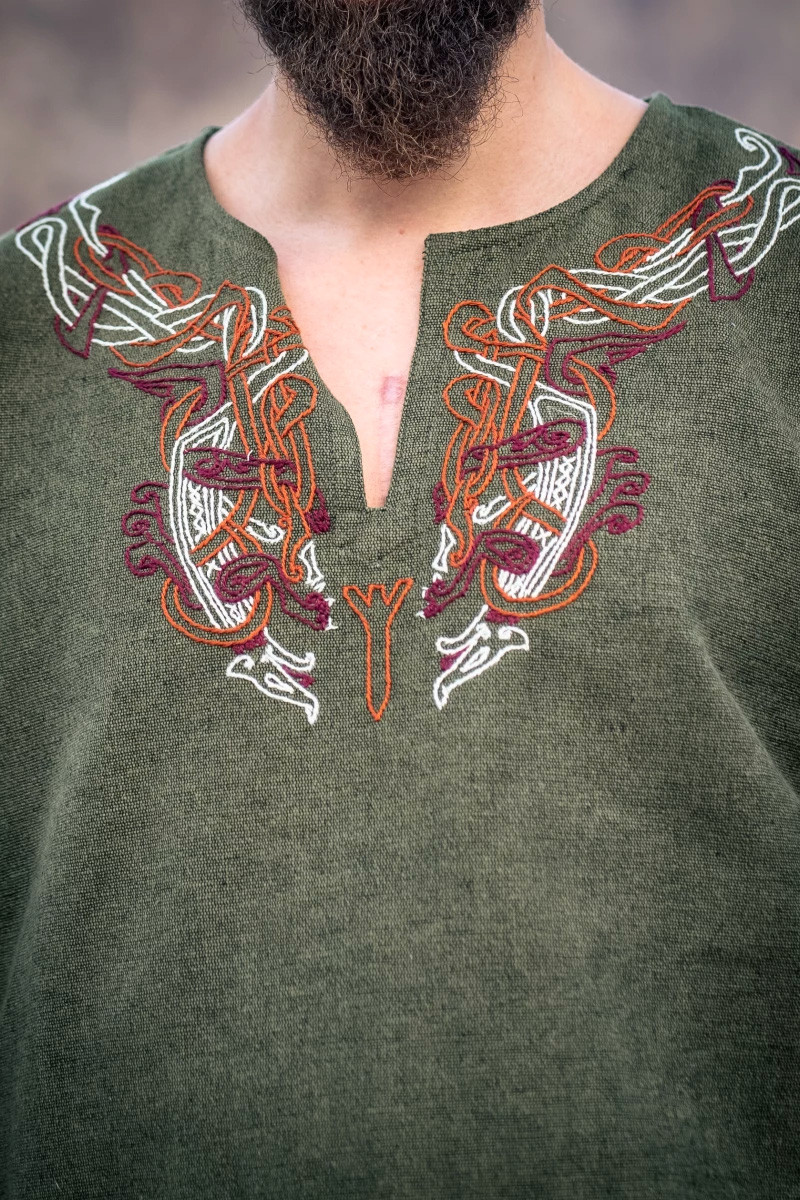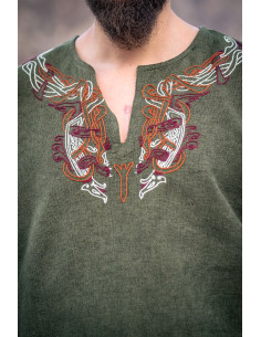 Nous répondons à vos questions sur ce produit: Tunique Snorri Viking avec broderie à la main de style Urnes, vert