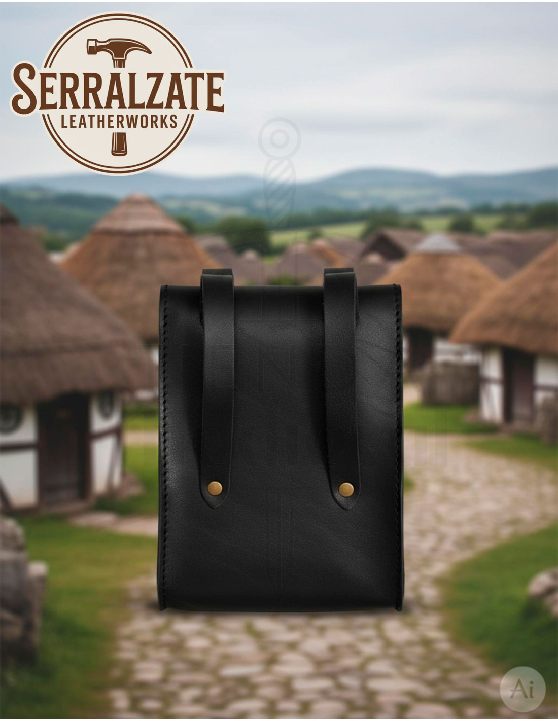 Le design rectangulaire et la couture visible soulignent une finition soignée et renforcée, pensée pour supporter le transit lors des foires et des journées de LARP. Les deux passants arrière permettent de la fixer de manière stable à différents types de ceintures, la sangle inférieure avec boucle offre un ajustement pour plus de sécurité, et le format compact garde l'essentiel sans s'encombrer, facilitant la mobilité lors d'événements très animés.