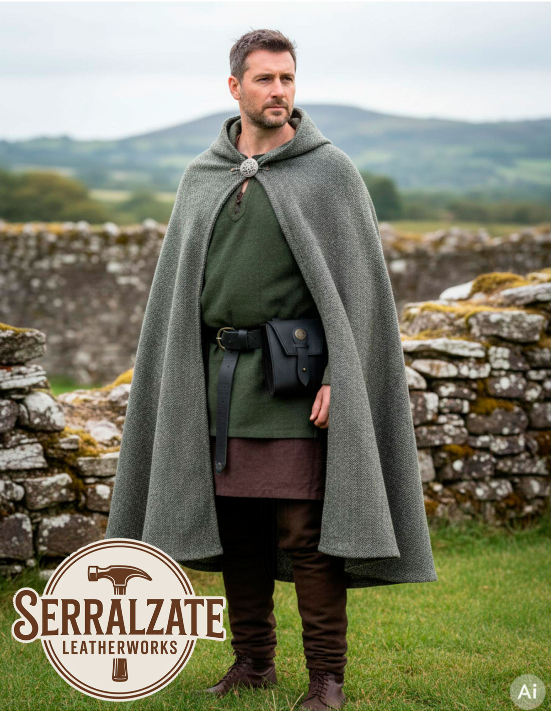 Fabriquée en Espagne avec du cuir authentique de première qualité, cette pièce combine cuir travaillé et ferrures en laiton pour vieillir avec grâce, acquérant une patine qui renforce son aspect de relique. Disponible en noir et marron, elle s'intègre aussi bien avec des vêtements historiques qu'avec des tenues urbaines cherchant une touche distinctive.