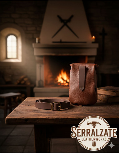 Sac médiéval Luis, type sac banane en marron (22x23 cm.)