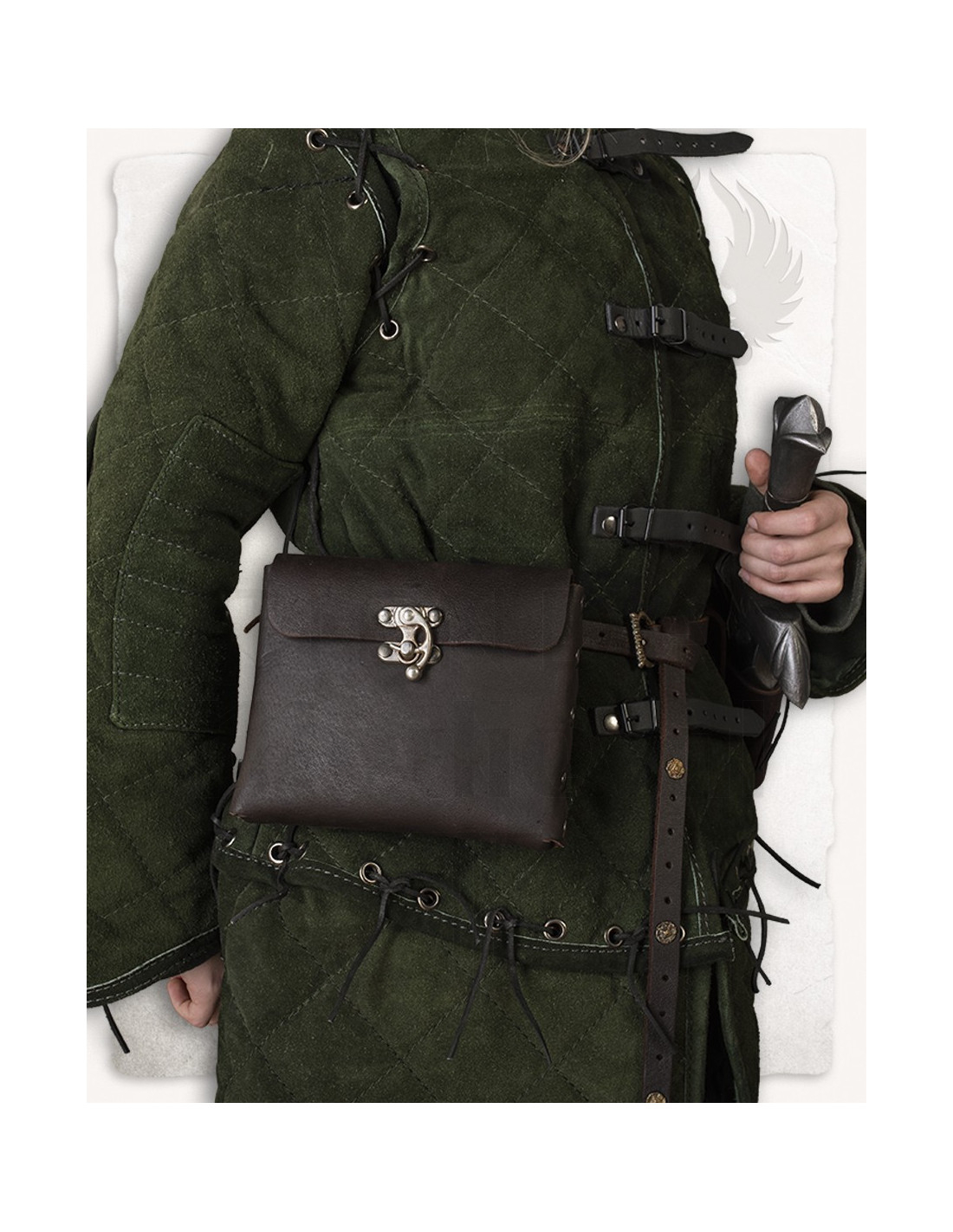 Le matériau en cuir associé à des détails en acier argenté, comme la fermeture et les rivets, apporte non seulement du style mais aussi une résistance à l’usage constant. Ce sac est parfait pour ceux qui recherchent un accessoire robuste, avec une touche vintage, prêt à s’adapter à tout personnage ou scène de fantasy, larps, événements médiévaux ou cosplay.