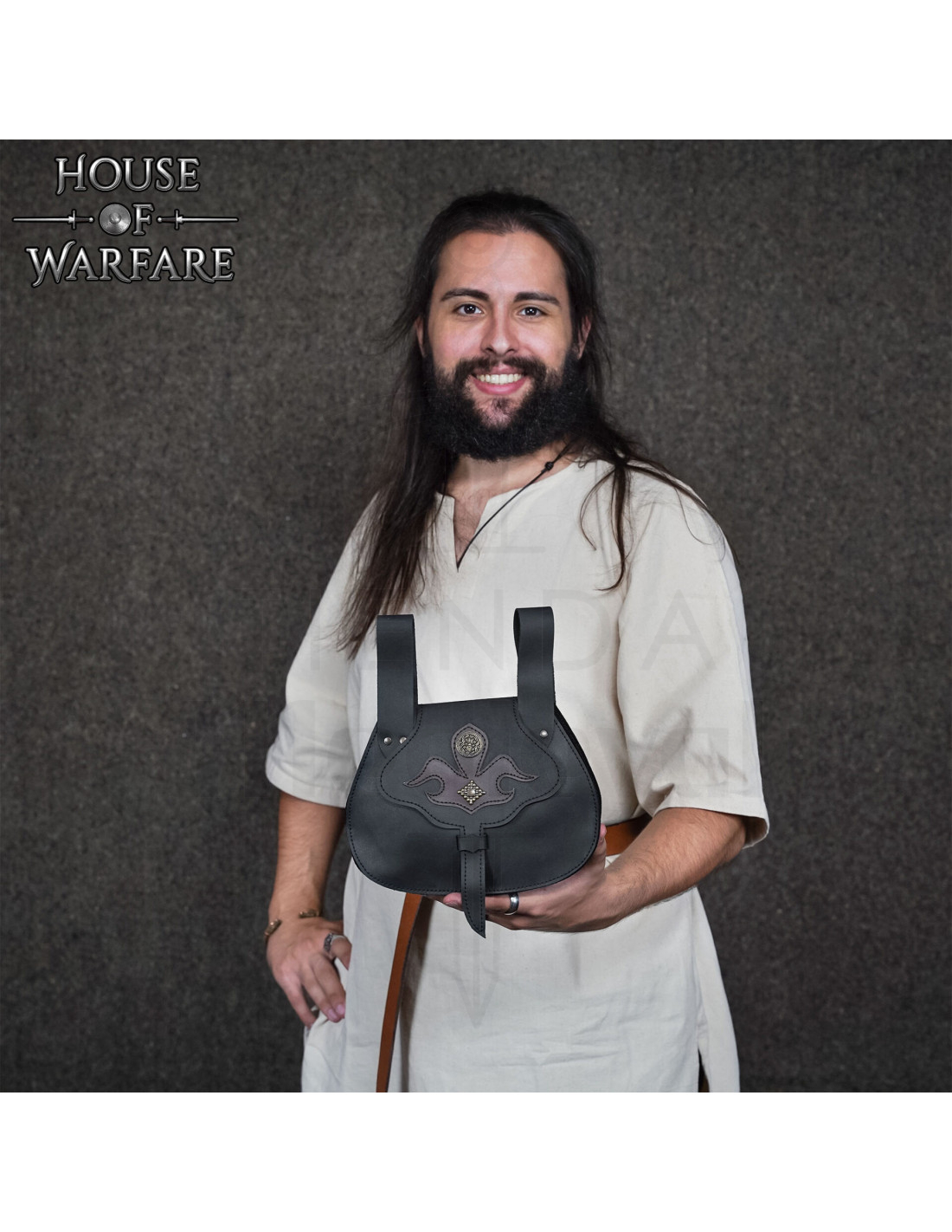 Conçue pour ceux qui apprécient l'authenticité, cette sacoche équilibre l'ornementation et la fonctionnalité, offrant juste assez d'espace pour des pièces de monnaie, des dés, de petits outils ou des parchemins, sans devenir volumineuse. La combinaison de tons sombres et l'ornement décoratif créent un look qui complète des costumes nobles, artisanaux ou de voyage, apportant une touche de caractère sans sacrifier la praticité.