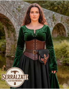 Il s'intègre avec des ceintures larges, restant stable lors de marches, combats simulés ou célébrations ; il est idéal pour les pièces de monnaie, parchemins, sceaux, petits outils ou le silex qui vous accompagne dans vos aventures. Le contraste entre le corps noir et les détails marron crée une esthétique médiévale espagnole avec des touches gothiques, parfaite pour le LARP, la reconstitution historique et les costumes thématiques recherchant authenticité et fonctionnalité.