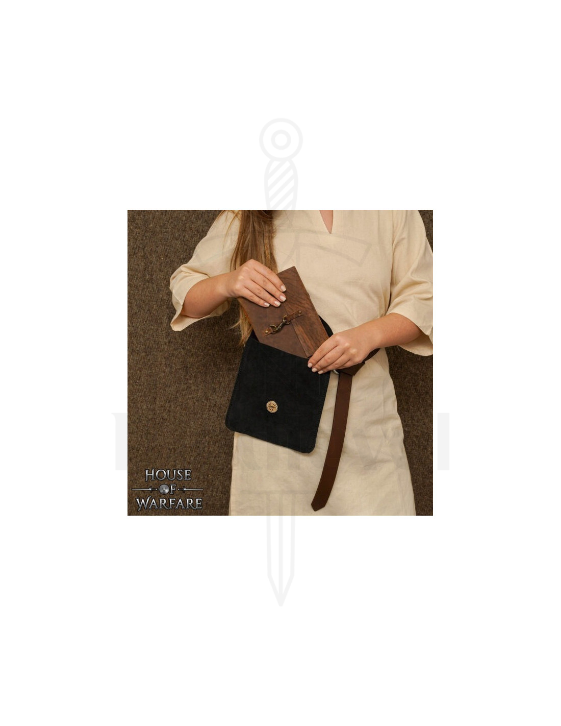 Conçu pour être porté à la ceinture, ses passants supérieurs permettent une fixation ferme, libérant vos mains sans renoncer au style. Sa forme compacte et ordonnée facilite le rangement des pièces de monnaie, clés et petits objets avec organisation, évitant les boudins et facilitant la recherche de l'essentiel en un instant. La finition noire apporte polyvalence, s'harmonisant aussi bien avec des looks contemporains qu'avec des reconstitutions ou des événements à ambiance historique.