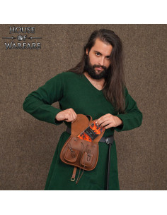 Organisation intelligente et design robuste se combinent dans une silhouette pratique, idéale pour les foires médiévales, reconstitutions historiques, randonnées ou simplement pour ceux qui apprécient une finition rustique et fiable. Son aspect sobre complète les tenues traditionnelles ou urbaines, ajoutant du caractère sans sacrifier la praticité.