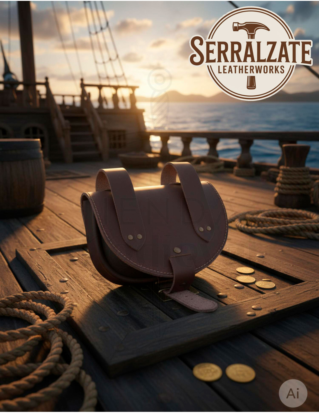 Plus qu'un simple accessoire, c'est une solution pratique pour transporter l'essentiel sans renoncer au style : sa taille compacte permet de se déplacer librement, la fermeture à boucle facilite l'accès rapide et sécurisé, et la fixation à la ceinture garde les mains libres tout en laissant la pièce visible comme symbole d'identité. Il s'associe parfaitement au chapeau de pirate, créant un ensemble coordonné pour ceux qui recherchent une cohérence esthétique.