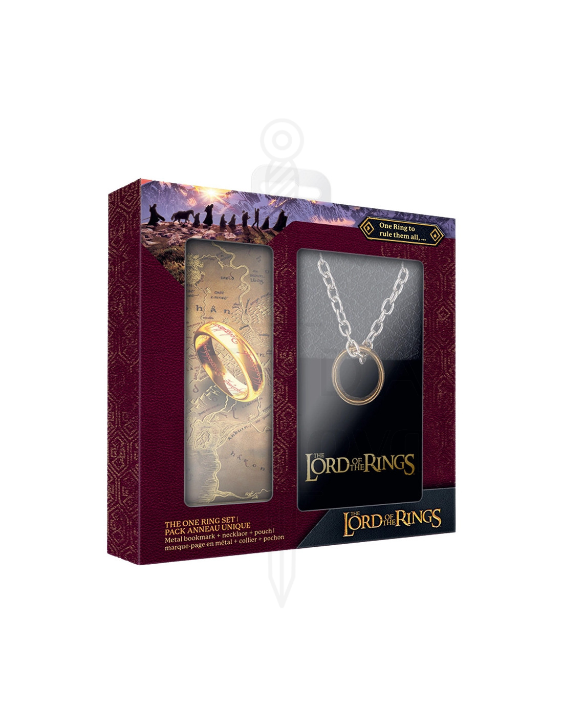Si vous souhaitez acheter le Pack Anneau Unique et Marque-pages en métal - Le Seigneur des Anneaux comme souvenir pour un fan ou comme objet de collection, cet ensemble relie l'esthétique légendaire de l'univers à des objets tangibles apportant une valeur émotionnelle et une utilité. L'univers du Seigneur des Anneaux a marqué la culture populaire par sa richesse visuelle et narrative, et ce pack capture cette essence dans des pièces évoquant aventure, mystère et élégance.