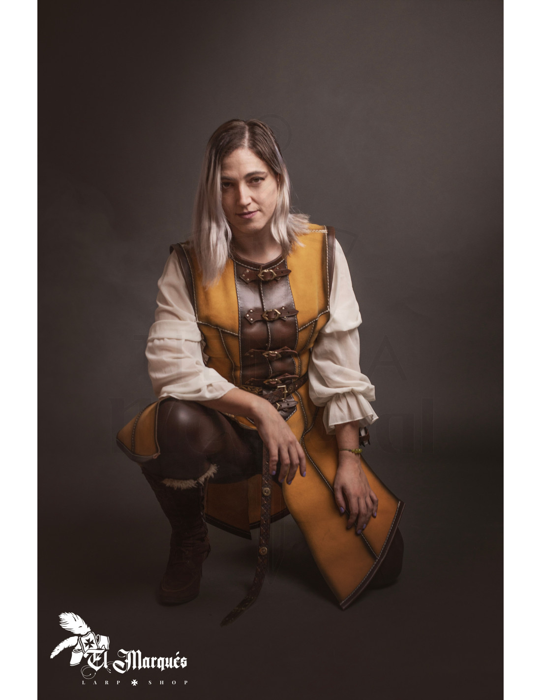 Le manteau médiéval long pour femme, daim jaune, est conçu pour celles qui recherchent une apparence soignée et fonctionnelle. Le daim de qualité procure une sensation chaleureuse et élégante, tandis que les renforts au niveau du col, des manches, de l’ourlet et de la partie frontale protègent les zones les plus sollicitées, offrant une durabilité accrue et une silhouette structurée qui résiste à une utilisation intensive. Le résultat est une pièce qui conserve sa forme et son caractère, idéale pour de longues journées lors de foires, reconstitutions ou événements à thème.