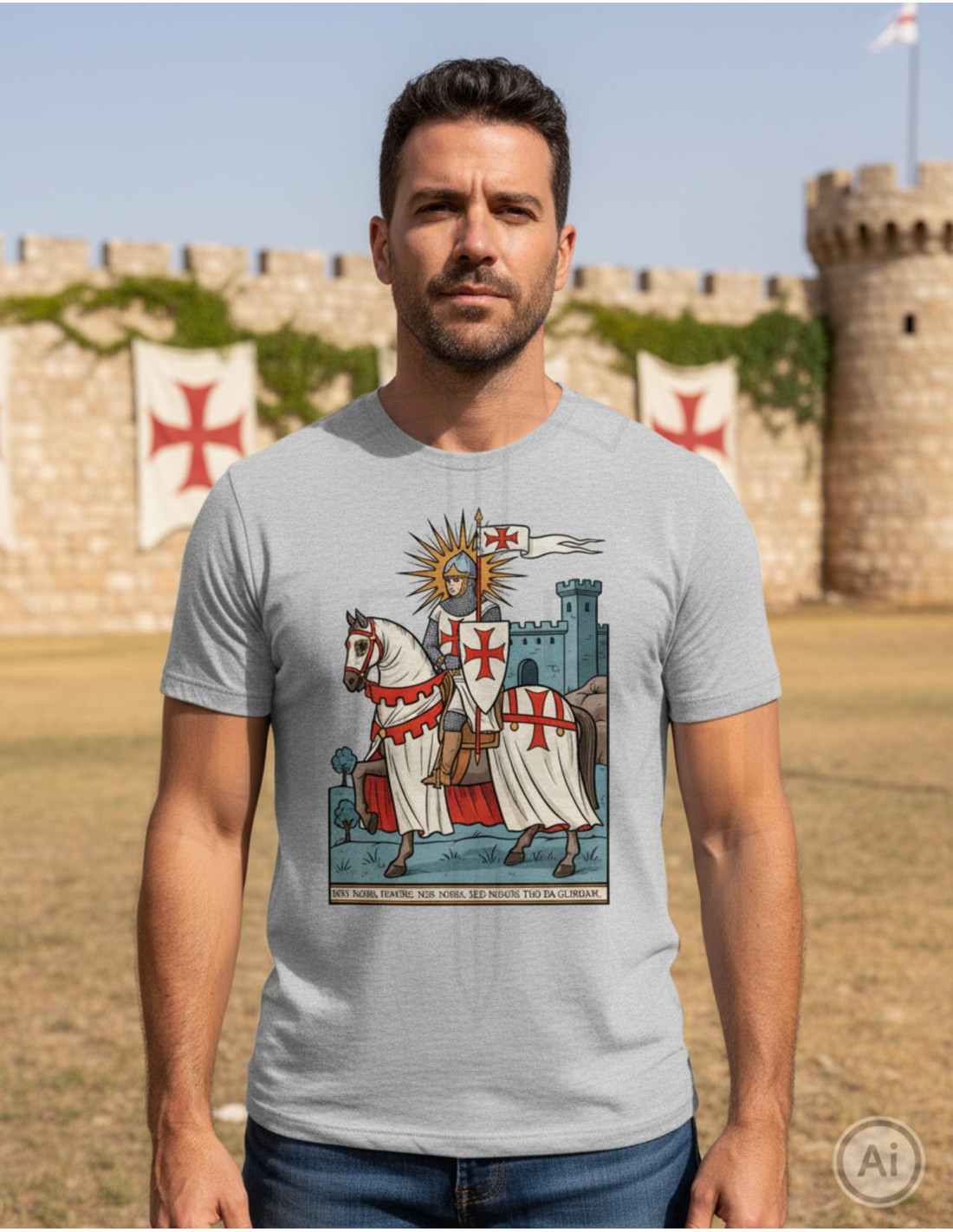 Prêt à le faire vôtre ? Acheter le T-shirt gris chiné pour homme sur le thème des Templiers est facile, ajoutez-le au panier et offrez un détail original qui dure.