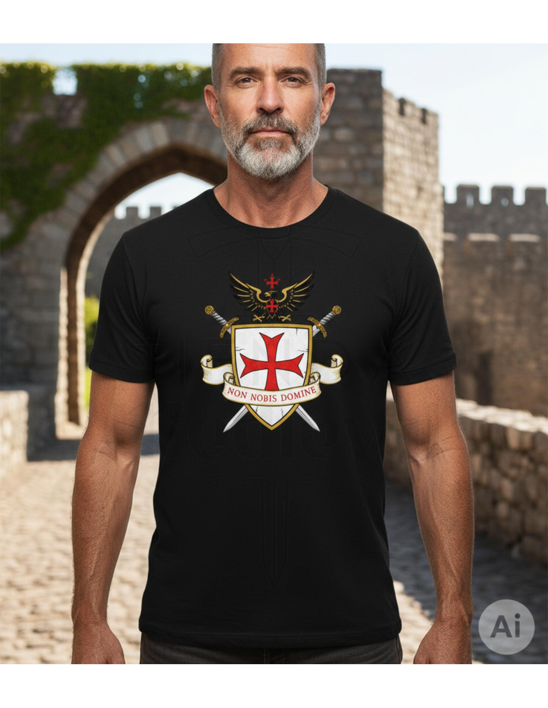 Prêt à acheter la T-shirt noire Templier pour homme, Non Nobis Domine ? Choisissez votre taille et votre couleur, et recevez un vêtement confortable, avec un design intégré et des finitions conçues pour durer.