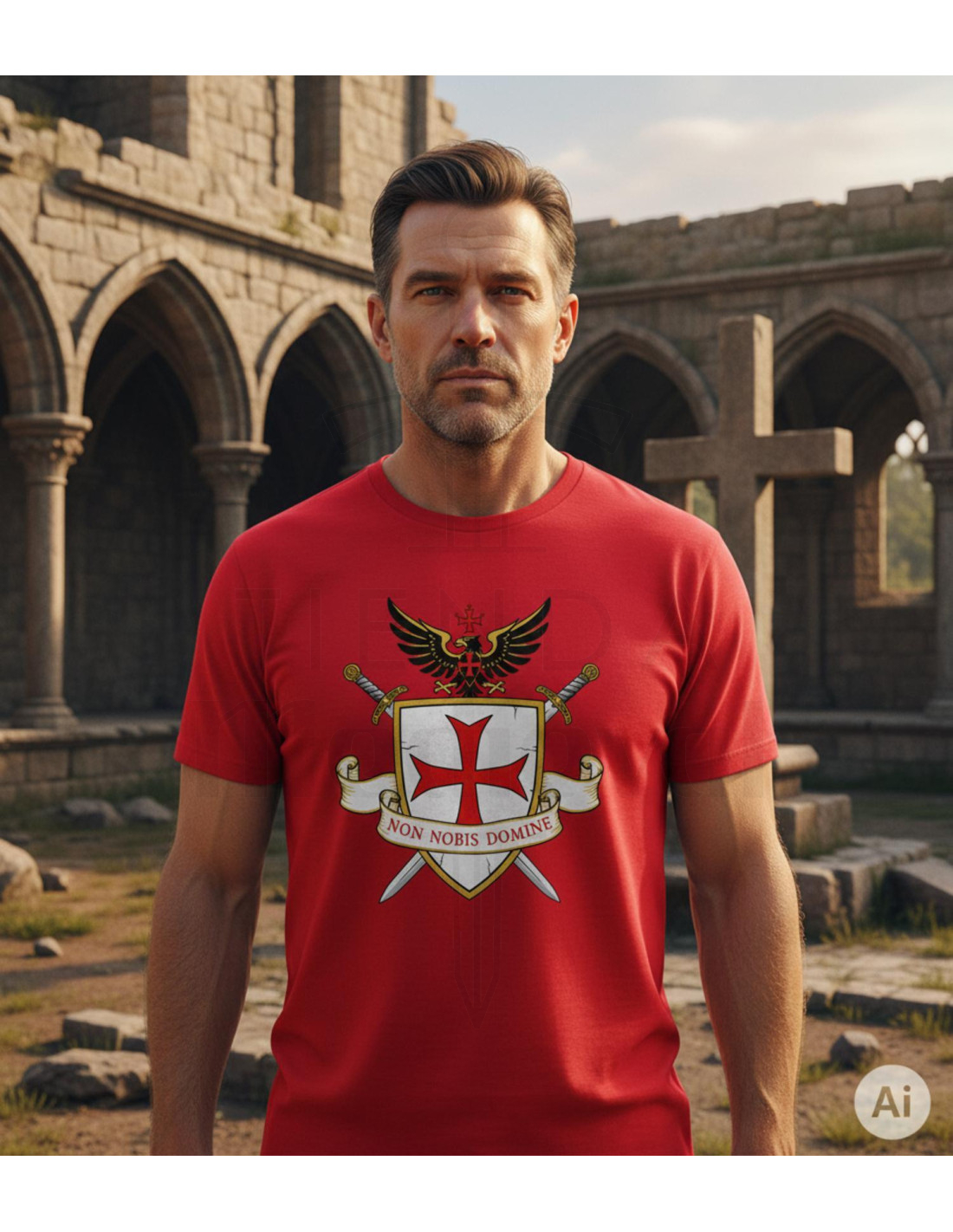 - Option parfaite si vous cherchez à acheter un T-shirt rouge Templiers pour homme, Non Nobis Domine, avec un message distinctif.