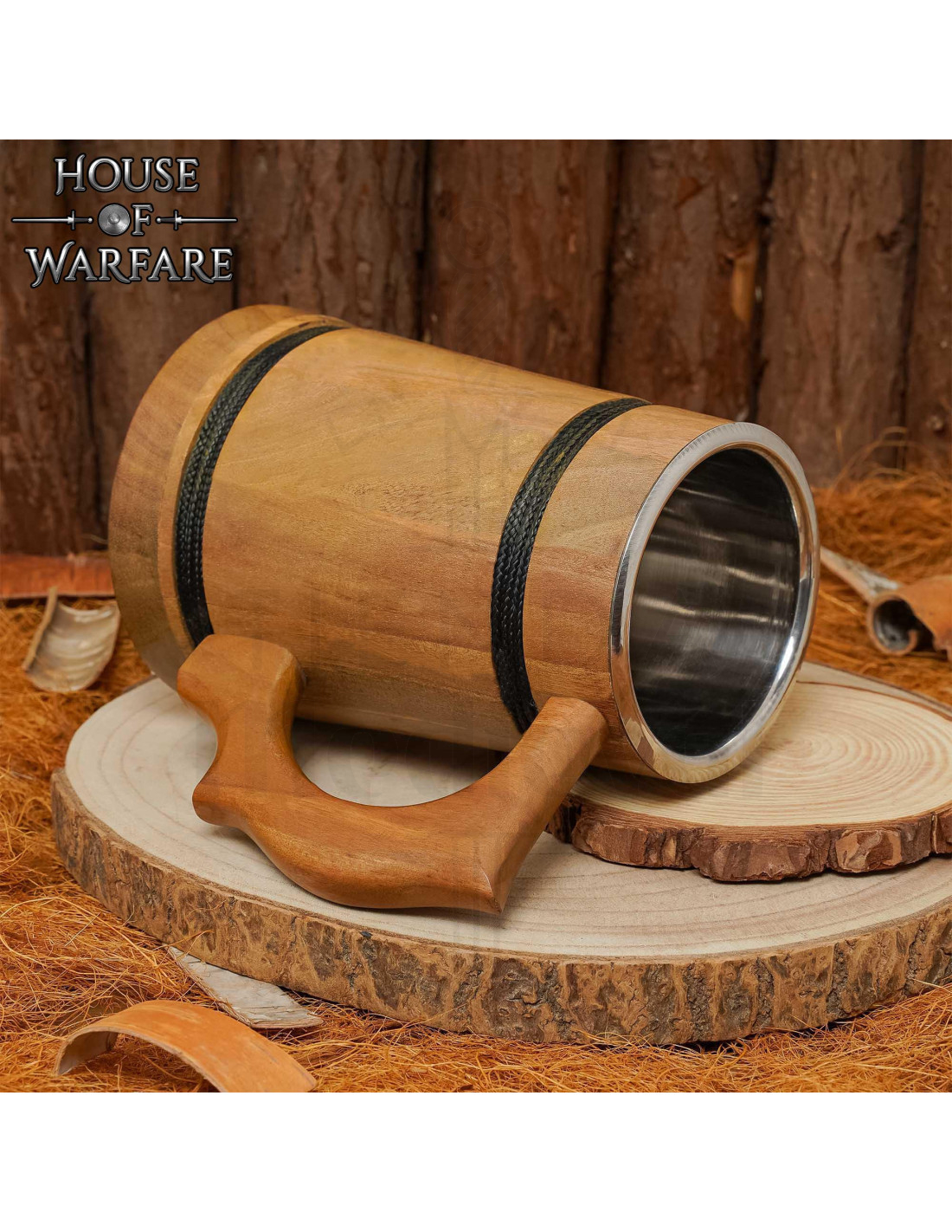 Disponible en deux teintes, claire et foncée, vous pouvez choisir la tonalité qui s'accorde le mieux à votre style, que ce soit pour se démarquer dans une vitrine ou pour harmoniser avec d'autres objets thématiques. L'union du bois résistant et de l'insert métallique fait de cette pièce une option pratique pour des boissons comme l'hydromel, la bière ou les sodas, tout en conservant son aspect élégant avec un entretien simple.