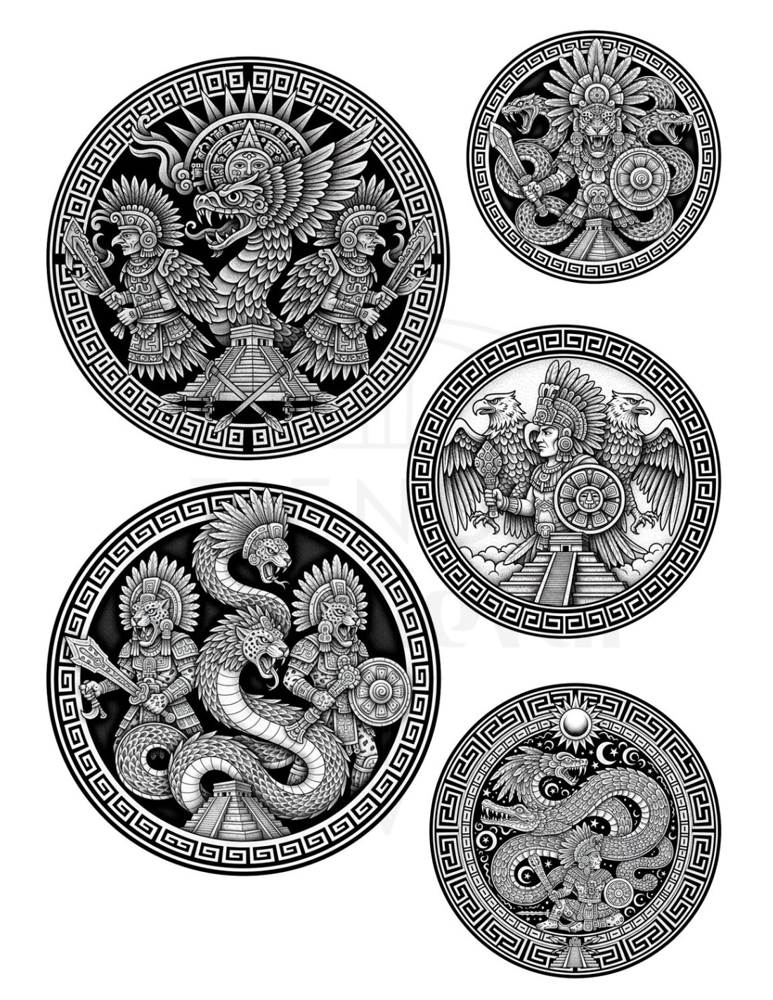 Vous souhaitez afficher un style rempli d'histoire et de culture sans compromettre votre peau ? Ce tatouage temporaire à thème Mesoaméricain, inspiré par les civilisations Aztèque et Maya, est l'option parfaite pour mettre en valeur votre passion pour ces anciennes cultures. Imaginez porter sur votre peau des motifs vibrants et pleins de symbolisme, de taille pratique au format A4, facilitant son application sur différentes zones du corps. Chaque autocollant est envoyé sur un papier spécial, en mode miroir, pour que, lors de la pose sur votre peau, le design soit dans la bonne orientation, créant un effet impressionnant et authentique.