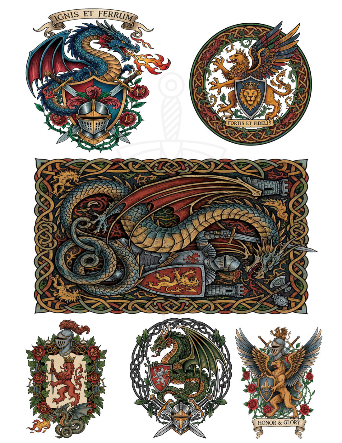 Appliquer votre tatouage temporaire est très simple et rapide : il suffit de choisir une zone sans poils et non articulée, de bien nettoyer et sécher la peau, d’enlever la feuille protectrice et de presser le papier avec le motif sur la peau humide pendant environ 30 secondes. Ensuite, retirez délicatement le papier et laissez sécher. En peu de temps, vous arborerez une œuvre d'art médiévale vibrante et accrocheuse qui durera entre 3 et 5 jours, selon l'utilisation et l'entretien.