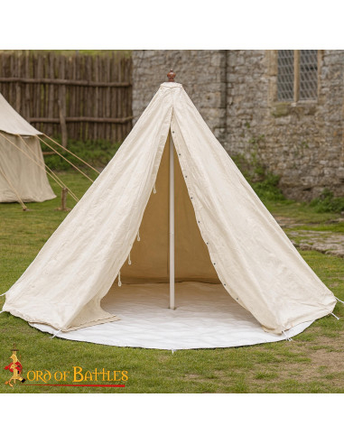 La silhouette conique, avec un espace intérieur exploitable et une structure centrale facile à reproduire, vous donne la liberté de créer un montage avec une hauteur utile, une ventilation naturelle et une atmosphère visuelle qui s'intègre parfaitement dans des reconstitutions, des foires renaissantes et des événements LARP.
