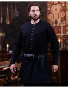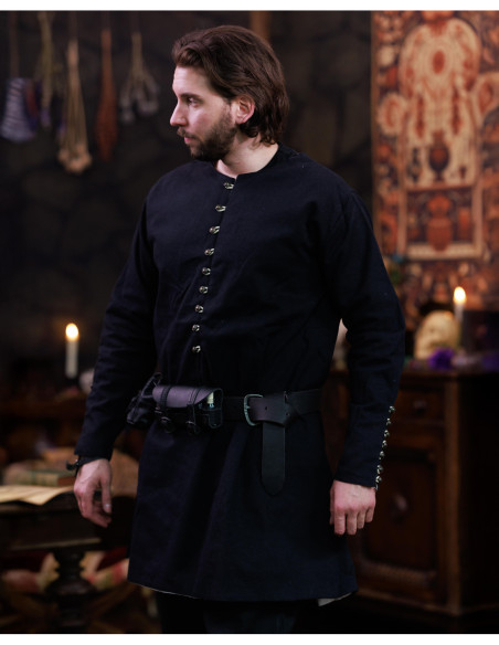 Tunique médiévale en coton noir, modèle Rafael