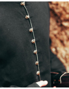Le col mao complète l'ensemble avec une esthétique soignée et discrète, parfaite pour ceux qui recherchent une pièce avec personnalité sans ornements inutiles. La longueur jusqu'au milieu de la cuisse offre à la fois couverture et liberté de mouvement, idéale si vous souhaitez un vêtement qui fonctionne lors d'événements, de reconstitutions historiques ou comme partie d'une tenue urbaine avec caractère.