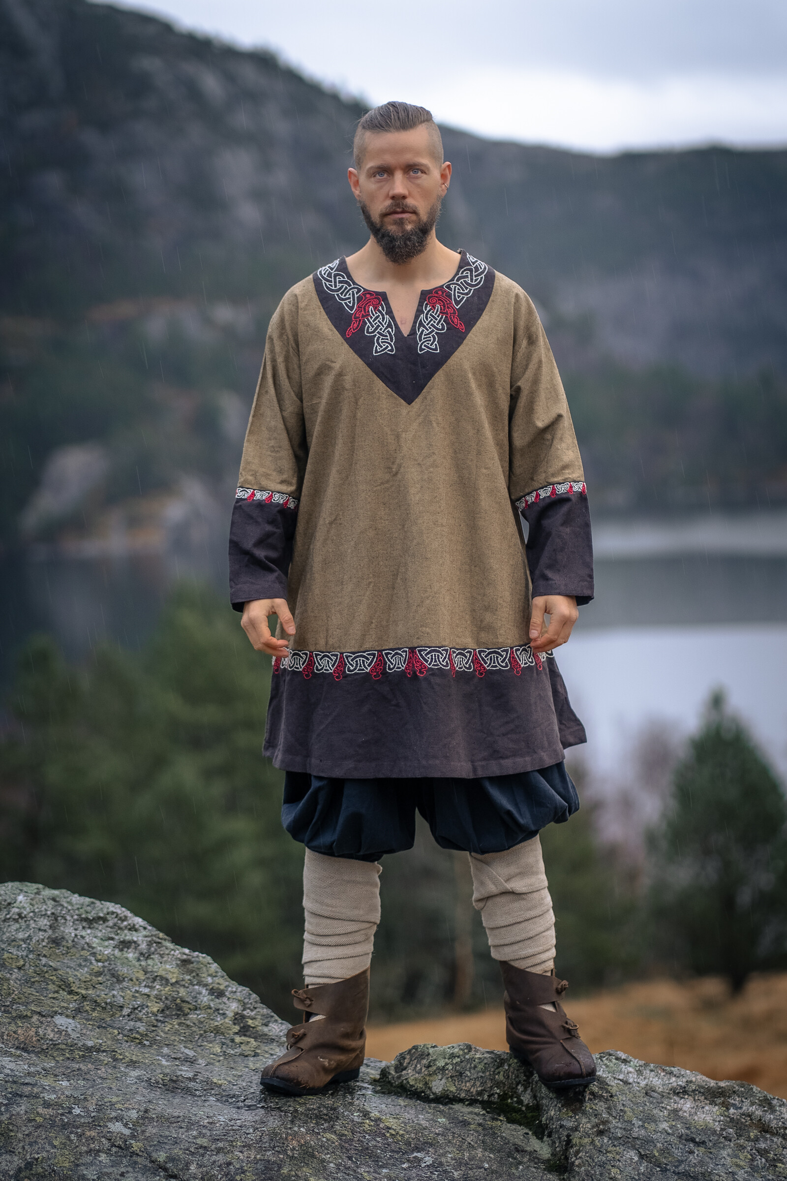 Chaque vêtement que tu choisis a le potentiel de te transporter dans un monde d'aventures, et la tunique viking Freydis en couleur sable est la porte d'entrée parfaite vers cet univers. Conçue par Leonardo Carbone, cette tunique est bien plus qu'un simple habit ; c'est une œuvre d'art qui se connecte à la riche tradition nordique, évoquant l'esprit indomptable des anciens vikings.
