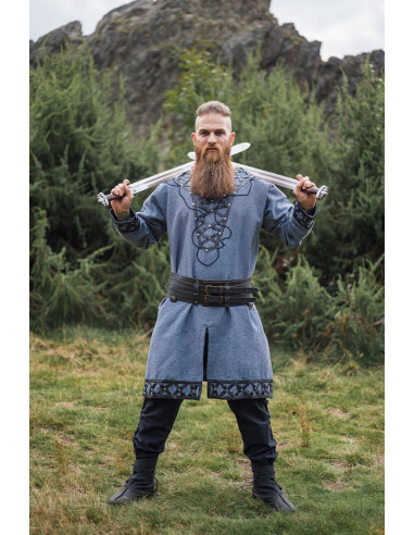 Imaginez la combiner avec des accessoires comme un casque métallique brillant et des amulettes qui autrefois protégeaient et représentaient l’identité de chaque guerrier. Ce vêtement devient la base idéale pour recréer cette atmosphère historique ou simplement pour profiter d’un vêtement confortable, résistant et avec de la personnalité.