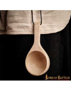 Fabriquée à partir de bois dur véritable, chaque cuillère est unique et soigneusement conçue pour une texture naturelle et un look ethnique. Sa résistance exceptionnelle vous garantit de pouvoir profiter longtemps de cette cuillère médiévale.