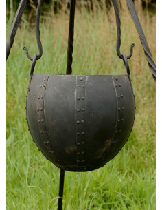 Une pièce polyvalente qui s'intègre parfaitement dans diverses périodes historiques grâce à sa construction solide et à son esthétique sombre et vieillie, mise en valeur par les rivets visibles et la texture artisanale évoquant l'époque des explorateurs et aventuriers. Ce chaudron n'est pas seulement un ustensile de cuisine, mais un héritage qui donne du caractère à votre maison, servant d'excellente option aussi bien pour les passionnés d'histoire que pour ceux qui apprécient la qualité typique du fait main.
