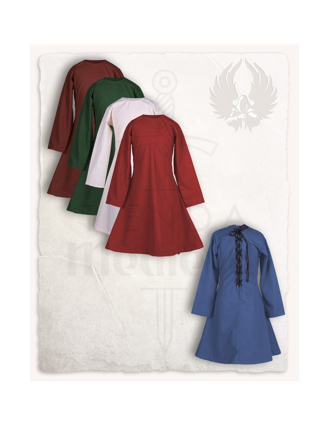 Embarquez pour un voyage à l'époque médiévale avec la charmante Robe médiévale pour fille modèle Lisbeth, maintenant disponible dans un magnifique coloris bleu. Cette robe simple est conçue pour les filles et les jeunes femmes, et présente un entrelacs à l'arrière qui ajoute une touche d'authenticité.